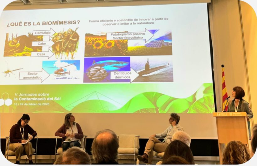En el marco de estas Jornadas, nuestra compañera Cynthia Alcántara ha participado con la ponencia “La biomímesis como estrategia sostenible en proyectos de remediación de suelos y aguas subterráneas”. En este contexto, se han presentado 3 casos de éxito en los que se han aplicado estrategias biomiméticas, poniendo de manifiesto la efectividad y versatilidad de estas soluciones en la restauración de ecosistemas degradados.